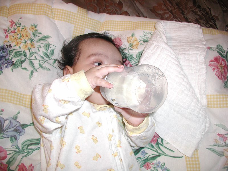 | Holding his own bottle |