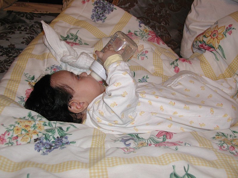 | Rohan does not completely hold his bottle yet. He still needs help most of the time, but sometimes he manages to hold it correctly. |