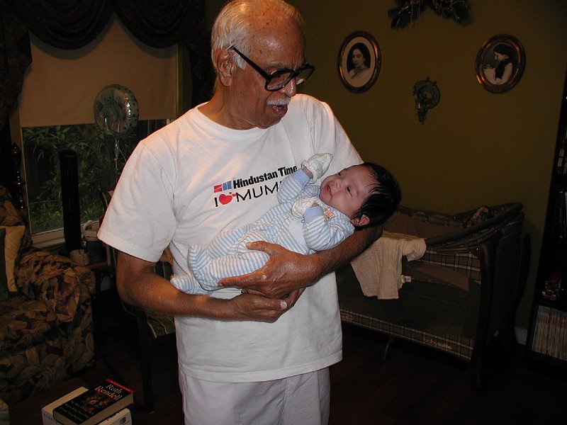 | Rohan, a month old with Grandfather |