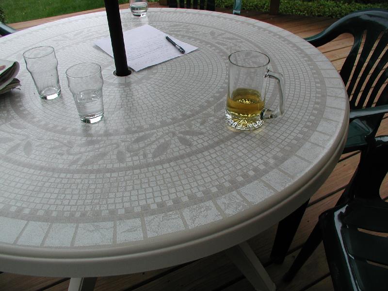 | Glass of beer on a table. | |
