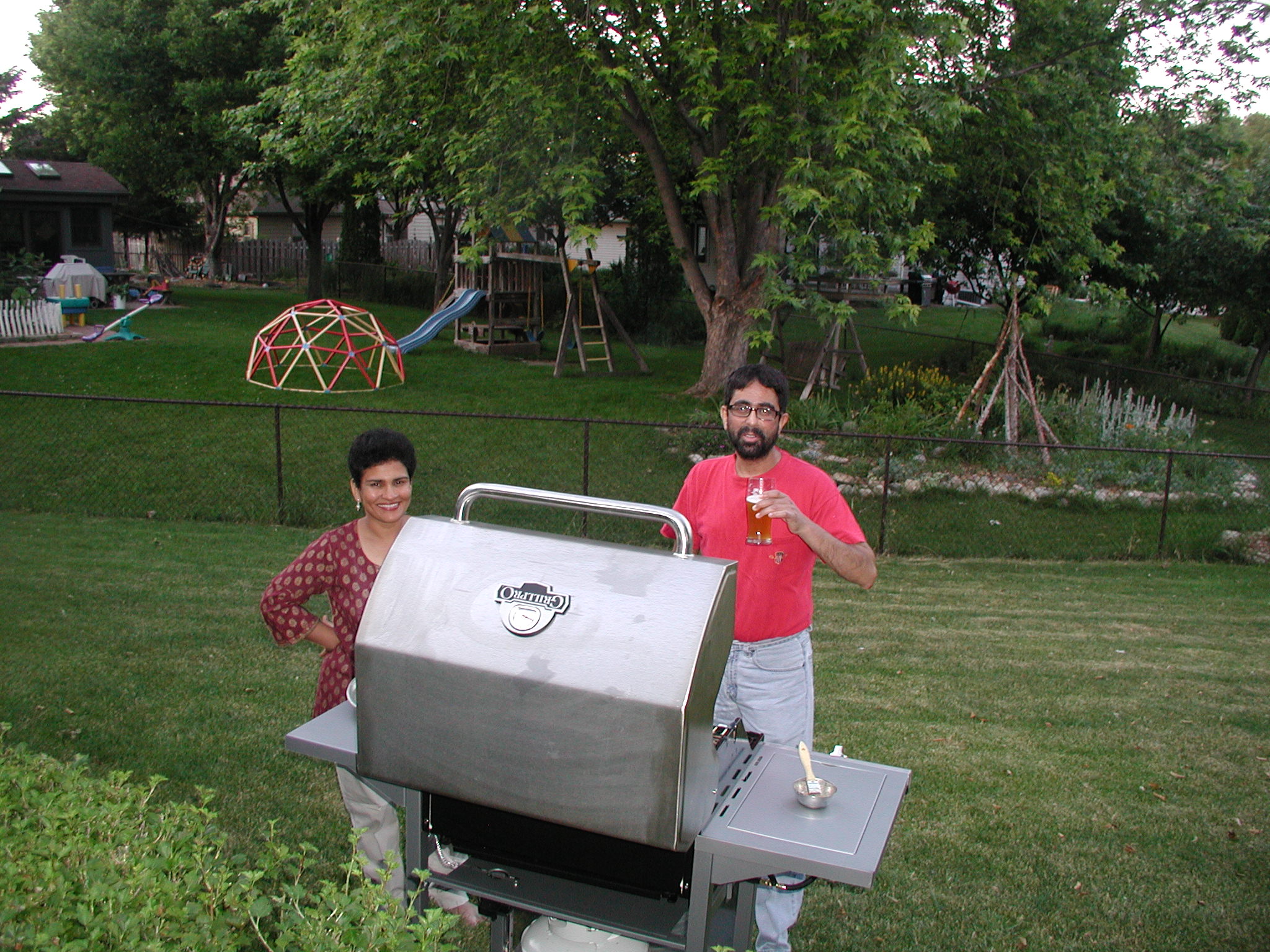 | I was manning the grill. Sujatha came to see what was cooking. |