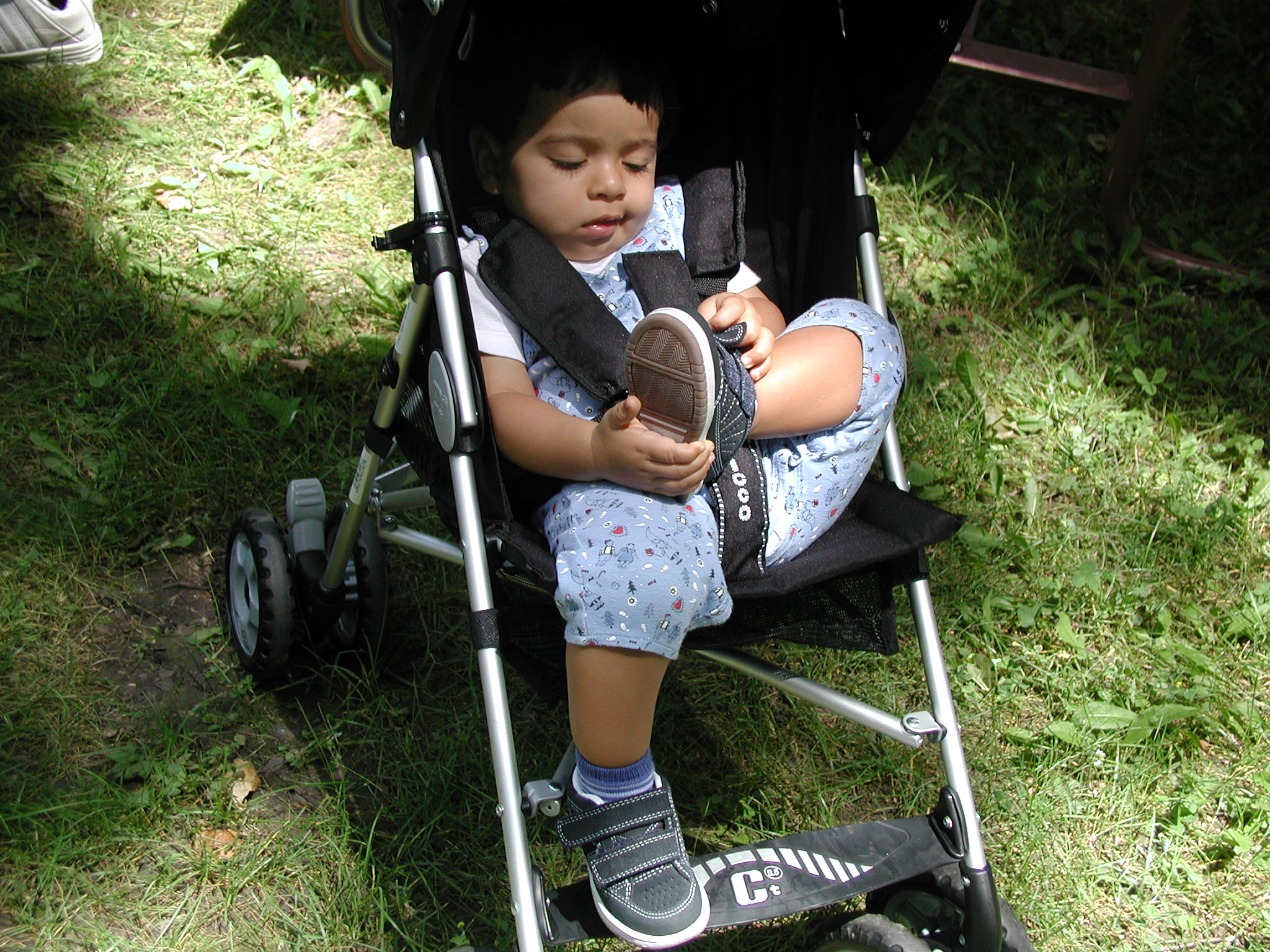 | One two buckle my shoe. Actually Rohan can neither count nor buckle his shoes. He can take his shoes off though. |