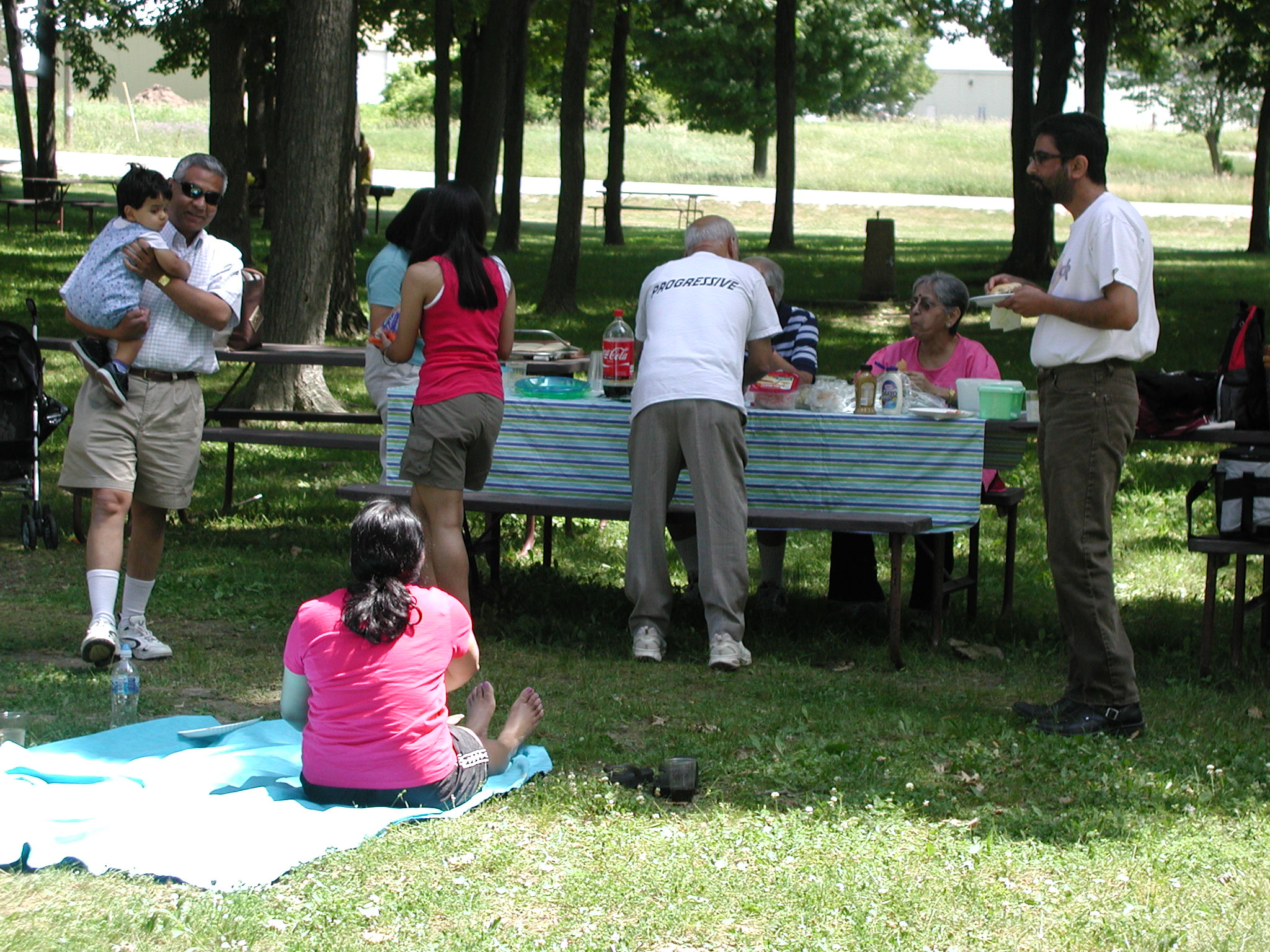 | Happy picnikers wolfing down the food. |