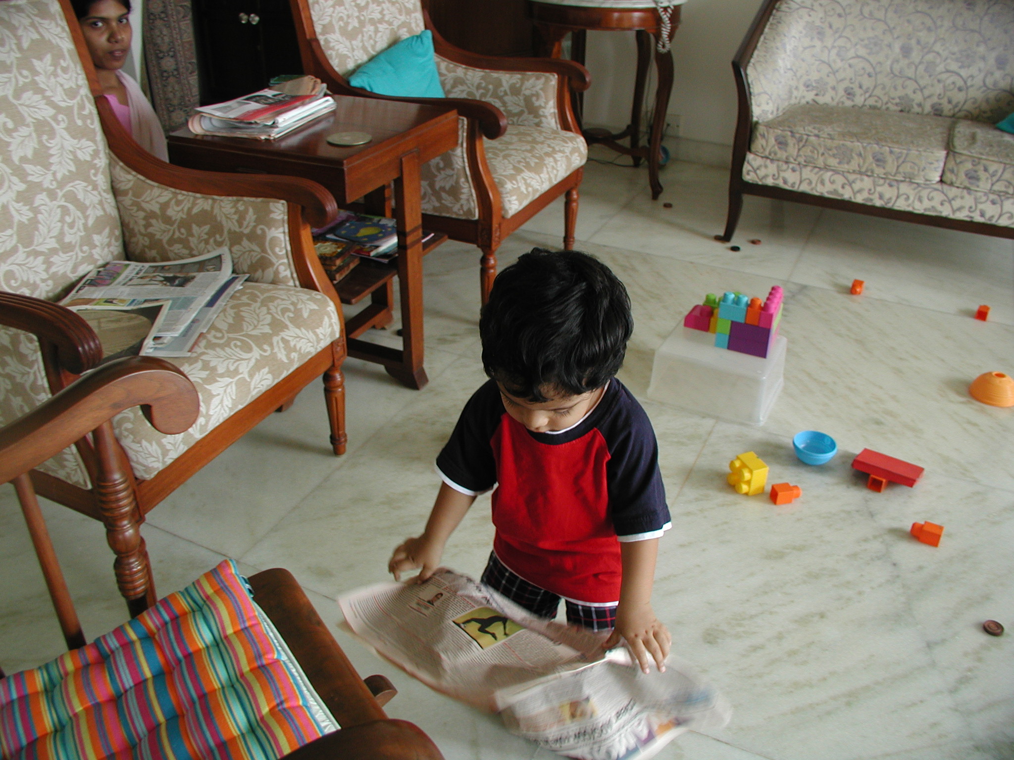 | He can only read the paper upside down |