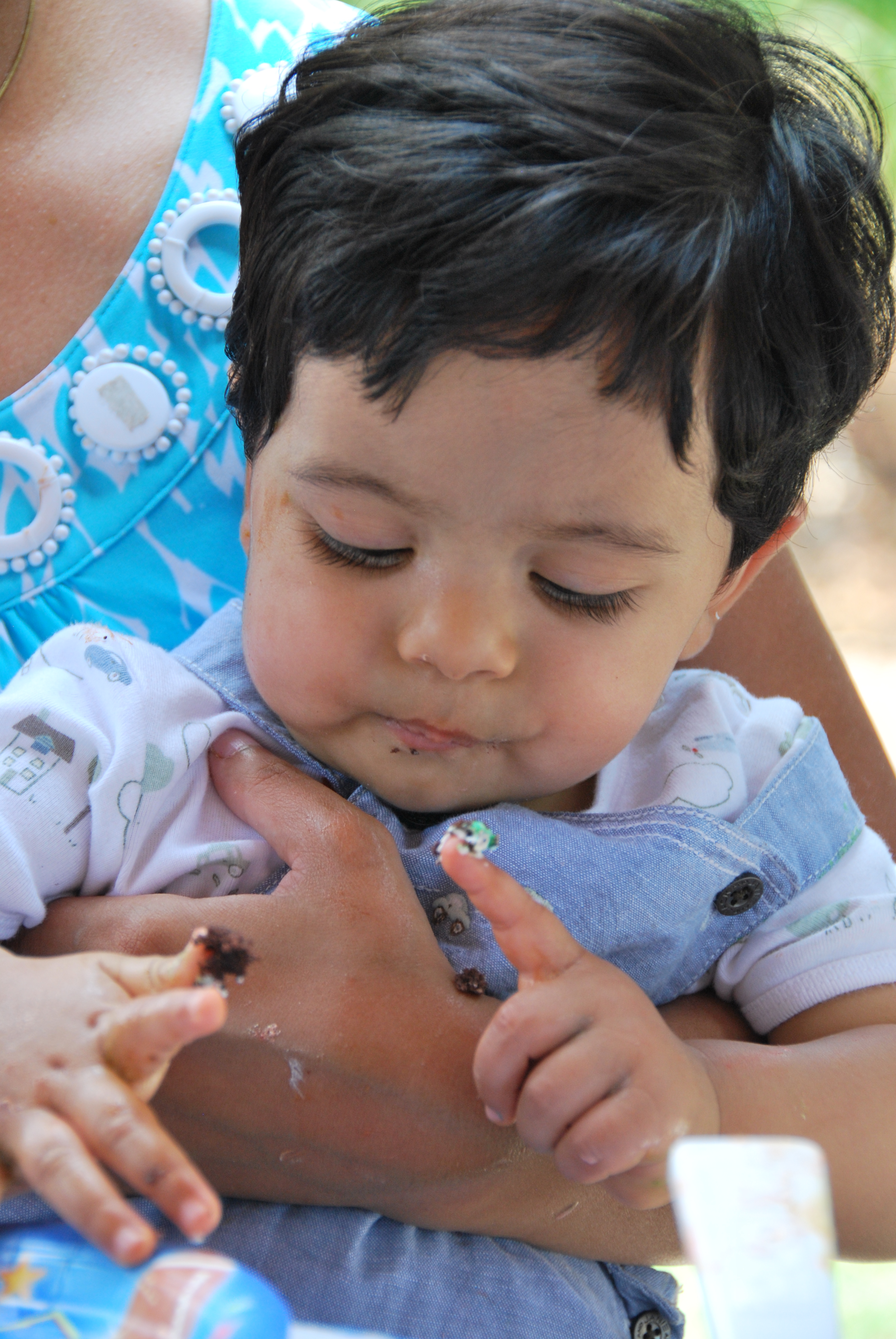 | He has got the cake on his fingers |