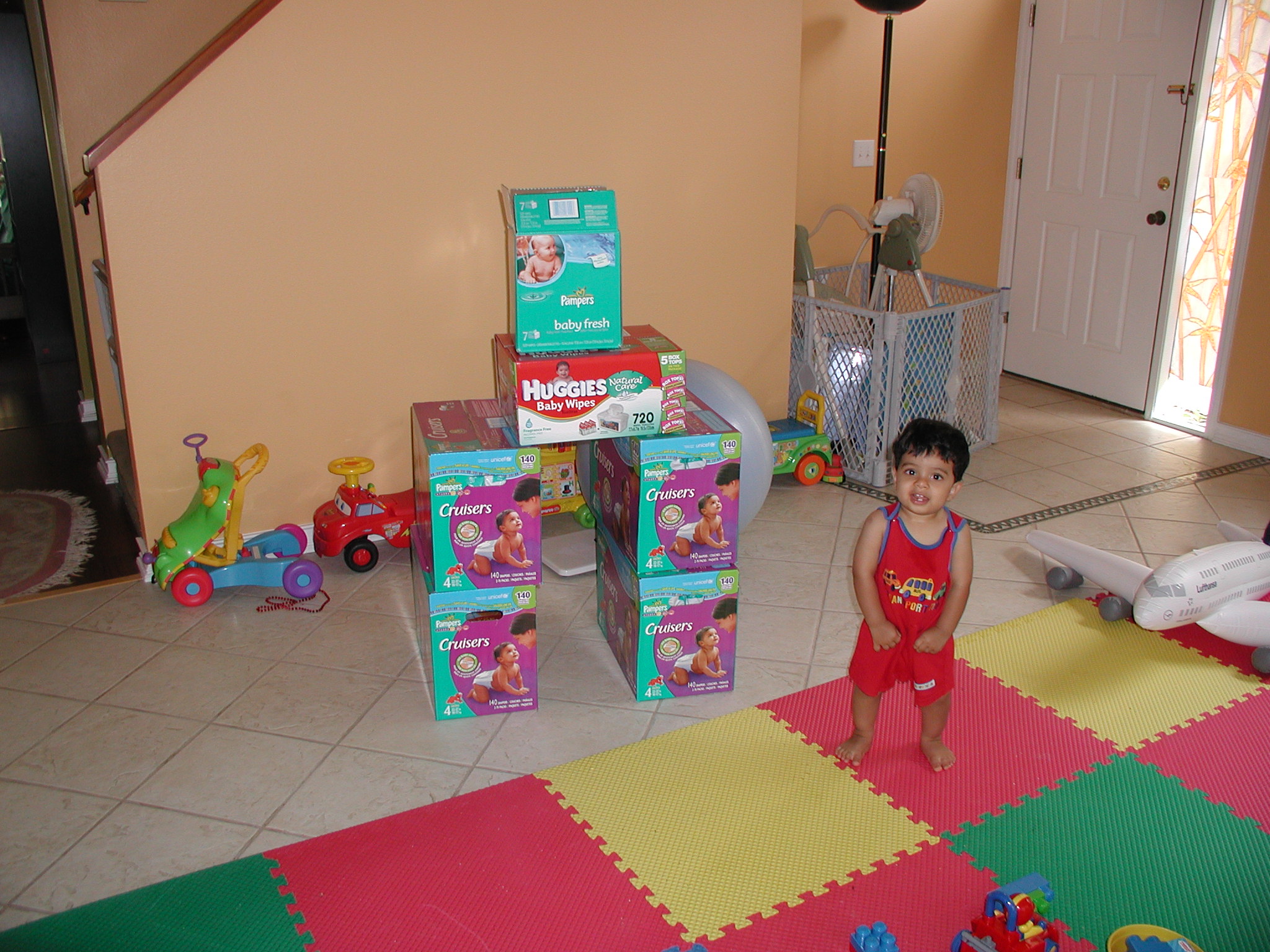 | The supplies are taller than him |